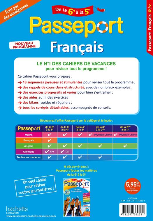 Ce cahier Passeport, écrit par une enseignante, vous propose : - 18 séquences joyeuses et stimulantes pour réviser tout le programme - Des rappels de cours clairs et structurés, avec de nombreux exemples - Des exercices progressifs et variés pour bien s'entraîner - Des aides au fil des exercices - Des bilans rapides et réguliers - Tous les corrigés détachables, accompagnés de conseils.