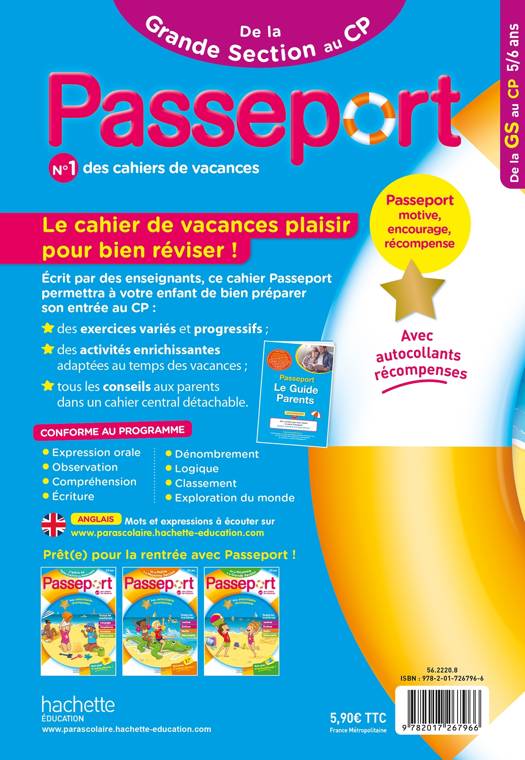 LE N°1 DES CAHIERS DE VACANCES pour réviser tout le programme avec plaisir ! Écrit par des enseignants, ce cahier Passeport permettra à votre enfant de bien préparer son entrée en CP :