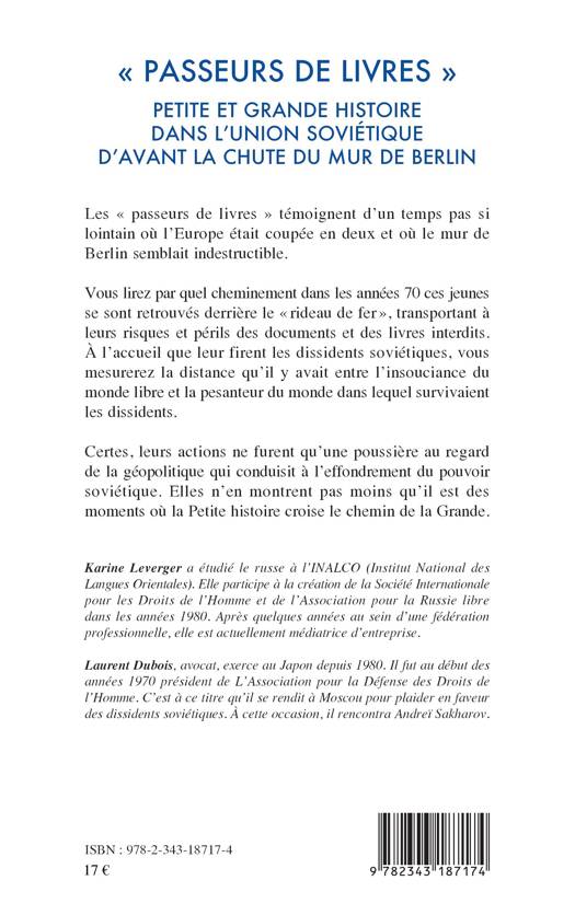 Ce livre est un récit composé de témoignages d'un temps pas si lointain où l'Europe était coupée en deux et où le mur de Berlin semblait indestructible. L'histoire des « passeurs de livres » se situe à l'époque de la "détente" entre les deux blocs représentés par les Etats-Unis et l'Union Soviétique. Ces récits montrent par quel cheminement dans les années 70 ces jeunes se sont retrouvés derrière le « rideau de fer », transportant à leurs risques et périls des documents et des livres interdits. À l'accueil que leur firent les dissidents soviétiques, nous mesurons la distance qu'il y avait entre l'insouciance du monde libre et la pesanteur du monde dans lequel survivaient les dissidents.