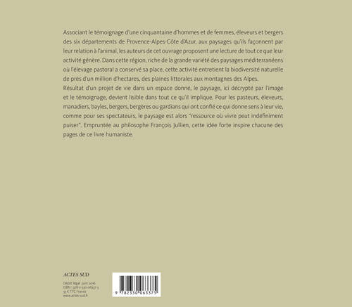 Tandis que nous entrons dans un nouvel âge géologique, l'anthropocène, où l'humain joue désormais le premier rôle dans l'avenir de la Terre, il est temps d'évaluer ses pratiques et de constater que s'il en est beaucoup de néfastes, il en est aussi d'heureuses dont la perte serait désastreuse. L'élevage extensif, dit aussi pastoral, en fait partie. Associant le témoignage des pasteurs, une cinquantaine d'hommes et de femmes, éleveurs et bergers, des six départements de Provence-Alpes-Côte d'Azur, aux paysages qu'ils façonnent et à leur analyse, les auteurs proposent ici un bilan.