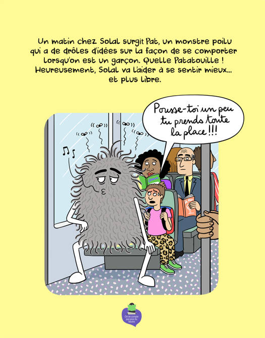 Un matin chez Solal surgit Pat, un monstre poilu qui a de drôles d’idées sur la façon de se comporter lorsqu’on est un garçon. Quelle Patatouille ! Heureusement, Solal va l’aider à se sentir mieux... et plus libre.
