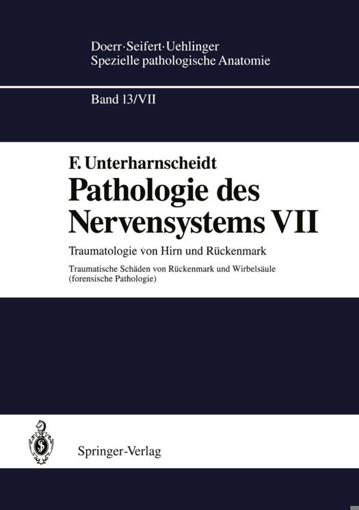 Die traumatischen Schäden des Rückenmarks und seiner Hüllen werden in diesem Beitrag systematisch abgehandelt. Die Darstellung beginnt mit der allgemeinen Neuropathologie der traumatischen Gewebeschäden des Rückenmarks und dessen Hüllen. Im zweiten Teil wird die spezielle Neuropathologie des Rückenmarks, geordnet nach Syndromen, dargestellt. Auch die traumatischen Schäden der Wirbelsäule, der Zwischenwirbelscheiben und des Bandapparates werden mitberücksichtigt, denn sonst wäre die Nosologie der verschiedenen Syndrome unvollständig und lückenhaft. Hier werden - neben historischen - auch biomechanische und klinische Aspekte abgehandelt. Ein ausführliches Kapitel ist den indirekten Verletzungen von Hals und Kopf gewidmet, die unter verschiedenen Termini wie Whiplash-, Schleuder- oder Peitschenschlagverletzungen bekannt sind.