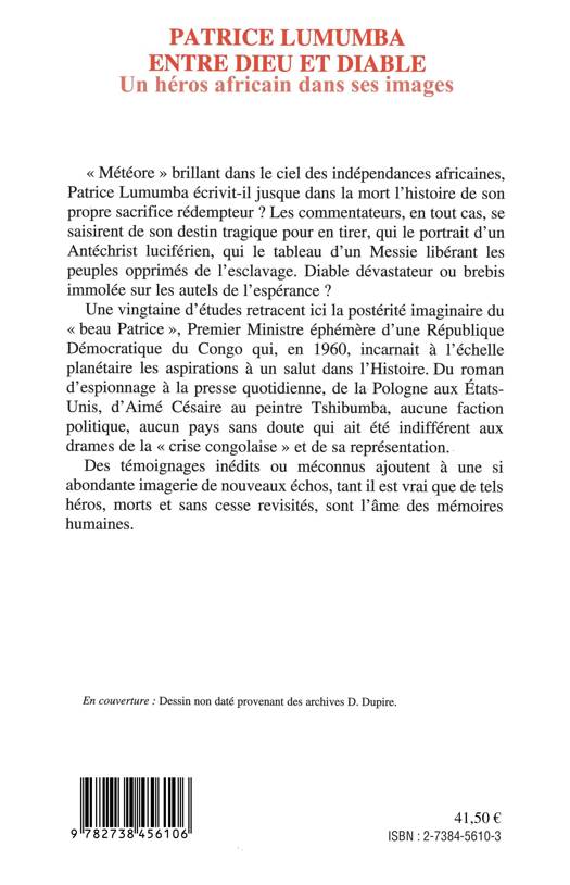 Etudes et témoignages inédits retracent ici la postérité imaginaire de Patrice Lumumba, Premier ministre éphémère d'une République démocratique du Congo en 1960. Diable dévastateur ou Messie libérant les peuples opprimés de l'esclavage ? Du roman d'espionnage à la presse quotidienne, d'Aimé Césaire au peintre Tshibumba, un parcours parmi les représentations du mythe Lumumba.