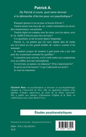 Pourquoi éprouve-t-on un jour ce besoin d'écrire ? Vouloir laisser une trace de soi, vouloir transmettre un savoir, des connaissances, une passion. Vouloir régler ses comptes avec les siens, avec les autres, avec la vie. Suffit-il d'écrire pour être écrivain ? Ces questions, je me les pose depuis longtemps. Patrick A., un patient que j'ai suivi depuis plus de trente ans m'a laissé un très grand nombre de notes comme il les nommait. Je voudrais essayer de montrer à quel point cela a été vital pour lui, et pourtant comment les qualifier ? La question reste ouverte, et j'ai voulu tenter une comparaison avec un célèbre écrivain schizophrène. Un écrivain, un auteur, un rédacteur ? D'où s'autorisent-ils ? Et qu'en est-il du lecteur ? A qui s'adressent ces écrits ? Je vous les transmets.