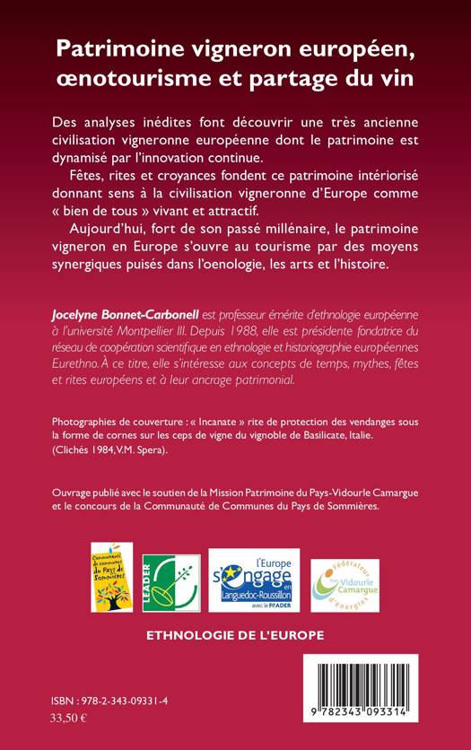 Des analyses inédites font découvrir une très ancienne civilisation vigneronne européenne dont le patrimoine est dynamisé par l'innovation continue. Fêtes, rites et croyances fondent ce patrimoine intériorisé donnant sens à la civilisation vigneronne d'Europe comme « bien de tous » vivant et attractif. Aujourd'hui, fort de son passé millénaire, le patrimoine vigneron en Europe s'ouvre au tourisme par des moyens synergiques puisés dans l'oenologie, les arts et l'histoire.