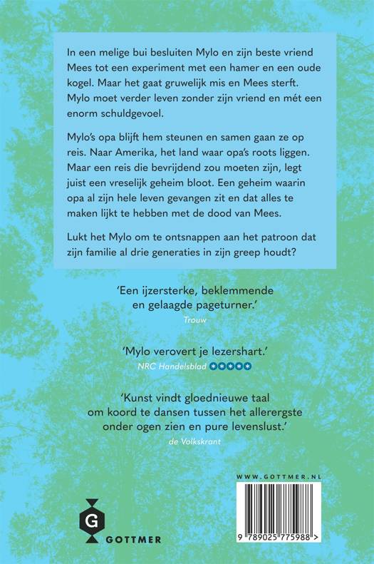 In een melige bui besluiten Mylo en zijn beste vriend Mees tot een experiment: met niets anders dan een hamer en een tang vuren ze een kogel af. Het gaat gruwelijk mis, Mees krijgt de kogel in zijn hoofd en sterft. Mylo moet verder leven zonder zijn vriend en mét een enorm schuldgevoel. Mylo's opa blijft hem steunen en samen gaan ze op reis. Naar Amerika, het land waar opa's roots liggen en waar Mylo's vader woont, die hij nooit eerder heeft ontmoet. Maar een reis die bevrijdend zou moeten zijn na de onvoorstelbare gebeurtenissen thuis, legt juist een gruwelijk geheim bloot. Een geheim waarin opa al zijn hele leven gevangen zit en dat alles te maken blijkt te hebben met de dood van Mees. Lukt het Mylo om te ontsnappen aan het patroon dat zijn familie al drie generaties in zijn greep houdt?