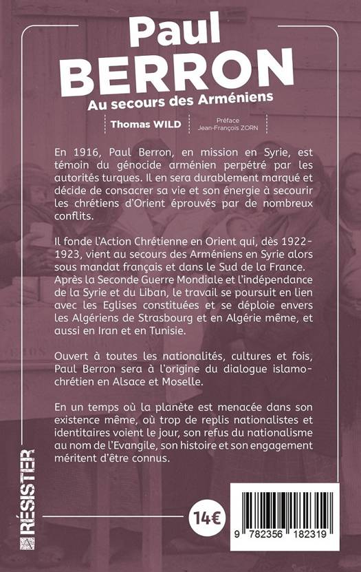 En 1916, Paul Berron, en mission en Syrie, est témoin du génocide arménien perpétré par les autorités turques. Il en sera durablement marqué et décide de consacrer sa vie et son énergie à secourir les chrétiens d'Orient éprouvés par de nombreux conflits.