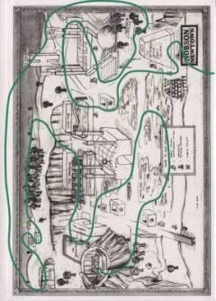 Writing provides an entry to Nobson. The entire city is made up of letters: a sculptural, difficult-to-read, computer-designed typeface called ‘Nobfont’. The letters are literally the building blocks of the architecture, spelling out the names of the buildings, sentences such as ‘Welcome to Nobson’ or lines from poems or historical texts.