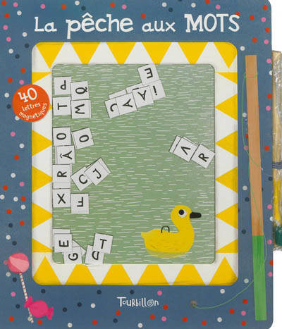 Un plateau, une canne à pêche, des lettres magnétiques,