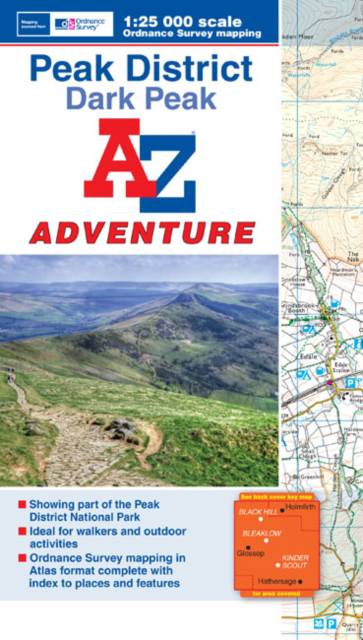 The A-Z Adventure series features the accuracy and quality of OS Explorer mapping in a convenient book, complete with index.The A-Z Adventure series is an innovative concept that utilises Ordnance Survey Explorer mapping in a book, therefore eliminating the need to fold and re-fold a large sheet map to the desired area. OS Explorer is Ordnance Survey's most detailed mapping at a scale of 1:25 000, showing public rights of way, open access land, national parks, tourist Information, car parks, public houses and camping and caravan sites.Unlike the original OS sheets, this A-Z Adventure Atlas includes a comprehensive index to towns, villages, hamlets and locations, natural features, nature reserves, car parks and youth hostels, making it easy to find the required location quickly. Each index entry has a page reference and a six figure National Grid Reference. At a book size of 240mm x 134mm it is the same size as a standard OS Explorer map when closed.This A-Z Adventure Atlas of the Peak District Dark Peak features 50 pages of continuous Ordnance Survey mapping covering: -Peak District National Park (northern part)-Kinder Scout-Hope Valley-Hathersage-Castleton-Snake Pass-Derwent ValleyThis A-Z Adventure Atlas has the accuracy and quality of OS Explorer mapping indexed within a book, making it the perfect companion for walkers, off-road cyclists, horse riders and anyone wishing to explore the great outdoors.Also available: A-Z Adventure Atlas of the Peak District, White Peak.