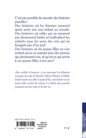 Avec acidité et humour, et en reprenant les éléments iconiques du conte de Perrault ou de l’adaptation qu’en fit en son temps Jacques Demy (l’âne qui crotte des pièces d’or, l’absence de mère, le cake d’amour, la demande en mariage, les robes couleur du temps, de lune…), Marie Dilasser et Hélène Soulié tissent une fable d’aujourd’hui, une histoire où les jeunes filles sortent du silence et s’allient pour prendre possession de leur corps et de leur vie.