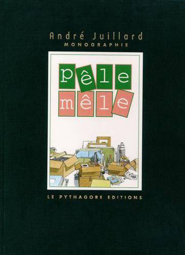 Pêle-mêle rassemble plus de 500 documents: affiches, illustrations, cartes postales, ex-libris, porte-folios, etc. sélectionnés par André Juillard lui-même. L' ouvrage est suivi d'une bibliographie très complète de l'auteur réalisée par Jean-Marie Korber. «Ce n'est donc pas un catalogue raisonné, un tout ou presque tout. Il y aurait trop de numéros que je préfère oublier et je ne suis guère enclin à raisonner sur mes dessins. Lorsqu' ils sont publiés, il y a longtemps qu'ils sont oubliés et si à l'occasion il en repasse un sous mes yeux je n'en vois plus que les défauts. (Paradoxalement, je ne m'explique toujours pas le mal que j'ai à m'en défaire). Il y a dans ce pêle-mêle tant de dessins que j'aimerais refaire, parfaire, qu'au bout du compte j'éprouve quelque doute sur la nécessité de cet ouvrage. Mais il a bien fallu en laisser beauoup d'autres bourrés d'agaçants défauts. Alors, après tout, pourquoi ne pas donner sa chance à celui-ci? Il n'est ni plus ni moins honorable que celui-là. Un peu foutoir, sans doute ... disons pêle-mêle. Je n'ai pas le goût du rangement.» André Juillard.