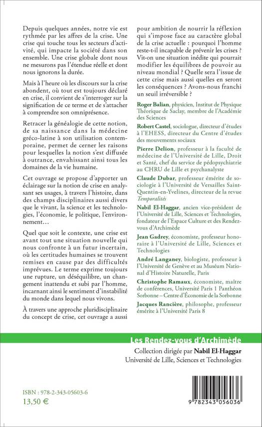 Cet ouvrage se propose d'apporter un éclairage sur la notion de crise en analysant ses usages à travers l'histoire, dans des champs disciplinaires aussi divers que le vivant, la science, les technologies, la politique, l'environnement. Il a aussi pour ambition de nourrir la réflexion : pourquoi l'homme reste-t-il incapable de prévenir les crises, quelle sera l'issue de cette crise et aussi les conséquences ? Avons-nous franchi un seuil irréversible ?