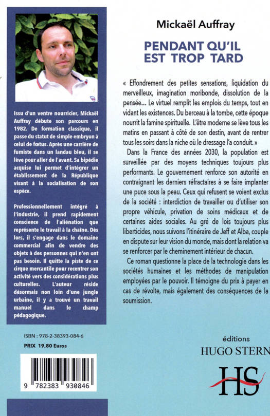 « Effondrement des petites sensations, liquidation du merveilleux, imagination moribonde, dissolution de la pensée.. Le virtuel remplit les emplois du temps, tout en vidant les existences. Du berceau à la tombe, cette époque nourrit la famine spirituelle. Lêtre moderne se lève tous les matins en passant à côté de son destin, avant de rentrer tous les soirs dans la niche où le dressage la conduit. » Dans la France des années 2030, la population est surveillée par des moyens techniques toujours plus performants. Le gouvernement renforce son autorité en contraignant les derniers réfractaires à se faire implanter une puce sous la peau. Ceux qui refusent se voient exclus de la société : interdiction de travailler ou dutiliser son propre véhicule, privation de soins médicaux et de certaines aides sociales. Au gré de lois toujours plus liberticides, nous suivons litinéraire de Jeff et Alba, couple en dispute sur leur vision du monde, mais dont la relation va se renforcer par le cheminement intérieur de chacun. Ce roman questionne la place de la technologie dans les sociétés humaines et les méthodes de manipulation employées par le pouvoir. Il témoigne du prix à payer en cas de révolte, mais également des conséquences de la soumission.
