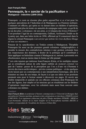 Pennequin: ce nom ne résonne plus guère aujourd'hui si ce n'est pour les quelques spécialistes de l'Indochine et de Madagascar ou d'histoire militaire. Comment cet officier, qui opéra sa vie durant entre ces théâtres d'opération, comptabilisant plus de trente-six annuités de campagne outre-mer, ce qui fit de lui un des plus « coloniaux » de son arme, a-t-il disparu des livres d'Histoire ? Penseur de la « pacification » au Tonkin comme à Madagascar, Théophile Pennequin fut aussi un des premiers grands coloniaux « indigénophiles » à prendre la mesure des contradictions internes à une gestion coloniale bien peu respectueuse des dominés, à douter de la politique qu'il contribuait à faire appliquer en Indochine comme à Madagascar.