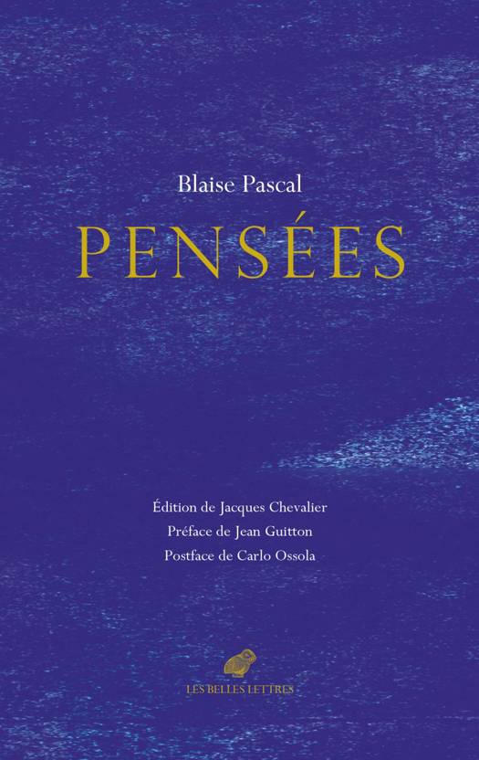 « Il faut se connaître soi-même – écrit Pascal – : quand cela ne servirait pas à trouver le vrai, cela au moins sert à régler sa vie, et il n’y a rien de plus juste ». Cet héritage classique s’unit, dans les Pensées, à une conscience aiguë des infinis qui nous engloutissent : c’est l’inquiétude de notre siècle, à laquelle Pascal répond promptement : « Mais quand l’univers l’écraserait, l’homme serait encore plus noble que ce qui le tue, puisqu’il sait qu’il meurt et l’avantage que l’univers a sur lui. L’univers n’en sait rien ». Le « pari » pascalien n’est pas un calcul entre les options du possible : c’est un devoir être qui engage nos forces et notre vie. Ce besoin radical de chercher une plénitude : « Apprenez que l’homme passe infiniment l’homme » apparaît, avec une clarté cohérente, dans l’édition des Pensées établie par Jacques Chevalier (1882-1962), constamment réimprimée de 1925 à 1991, précédée de la Préface de Jean Guitton qui accompagnait l’édition de 1962.