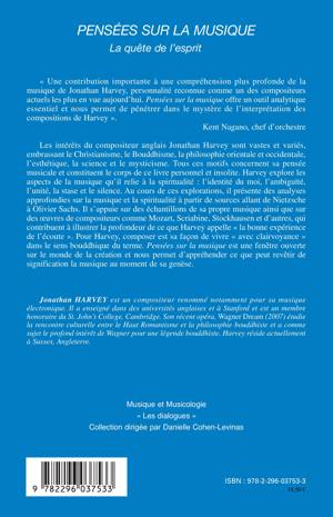 Les intérêts du compositeur anglais Jonathan Harvey sont vastes et variés, embrassant le Christianisme, le Bouddhisme, la philosophie orientale et occidentale, l'esthétique, la science et le mysticisme. Harvey explore les aspects de la musique qu'il relie à la spiritualité : l'identité du moi, l'ambiguïté, l'unité, la stase et le silence. Au cours de ces explorations, il présente des analyses approfondies sur la musique et la spiritualité à partir de sources allant de Nietzsche à Olivier Sachs. Il s'appuie sur des compositeurs comme Mozart, Scriabine, Stockhausen et d'autres.