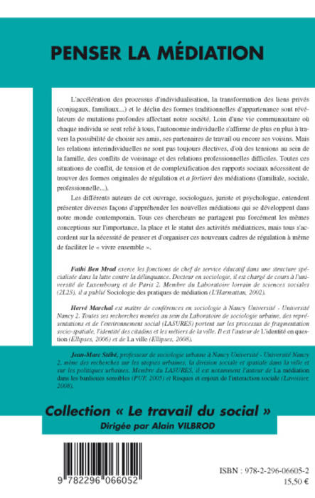 Face aux mutations profondes de notre société, les rapports sociaux se complexifient et nécessitent de trouver des formes originales de régulation et a fortiori des médiations (familiale, sociale, professionnelle). Des sociologues, des juristes, des psychologues entendent présenter diverses façons d'appréhender les nouvelles médiations qui se développent dans notre monde contemporain. IL apparaît nécessaire de penser et d'organiser ces nouveaux cadres de régulation à même de faciliter le "vivre-ensemble".