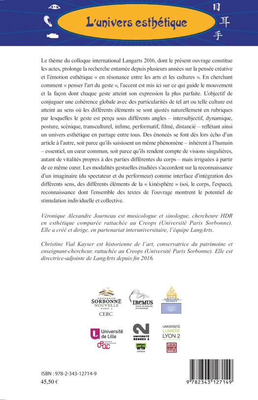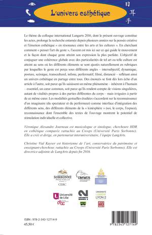 "Penser l'art du geste", c'est comprendre ce qui guide le mouvement et la façon dont chaque geste atteint son expression la plus parfaite. Les gestes, qu'ils soient dynamiques, scéniques ou performatifs, sont perçus et analysés sous des angles variés par les différents contributeurs de cet ouvrage. Réunis par un univers esthétique commun, leurs articles se font ainsi écho, mêlant une approche à la fois directe - la sensation corporelle de l'artiste - et indirecte ; à travers une connaissance poussée de l'histoire de l'art et de la littérature.