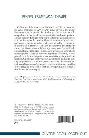 Ce livre étudie la place des médias de masse sur les scènes théâtrales des XXe et XXIe siècles et vise à déterminer l'importance de la pensée des médias par les artistes pour la compréhension des grandes mutations théâtrales de cette période. Il s'interroge sur les fonctions du théâtre dans un paysage où les arts et les médias sont en situation de concurrence et d'inspiration réciproque et réfléchit aux conséquences de cette situation sur le théâtre à l'ère des médias numériques.