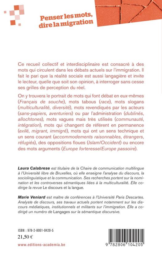 Ce recueil collectif et interdisciplinaire est consacré à des mots qui circulent dans les débats actuels sur l'immigration. Il fait le pari que la réalité sociale est aussi langagière et invite le lecteur, quelle que soit son opinion, à interroger sans cesse ses grilles de perception du réel.