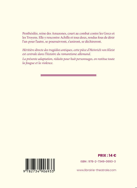Penthésilée, reine des Amazones, court au combat contre les Grecs et les Troyens. Elle y rencontre Achille et tous deux, rendus fous de désir l’un pour l’autre, se poursuivront, s’uniront, se déchireront.