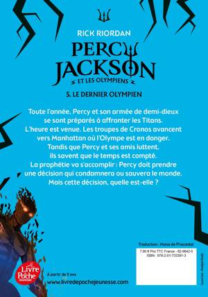 Toute l'année, Percy et son armée de demi-dieux se sont préparés à affronter les Titans. L'heure est venue. Les troupes de Cronos avancent vers Manhattan où l'Olympe est en danger. Tandis que Percy et ses amis luttent, ils savent que le temps est compté. La prophétie va s'accomplir : Percy prendra une décision qui condamnera ou sauvera le monde. Mais cette décision, quelle est-elle ?