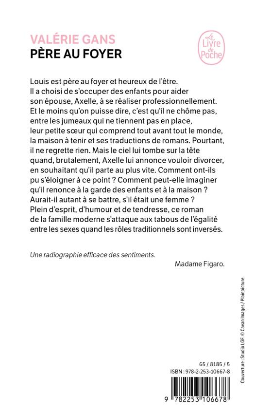 Louis est père au foyer et heureux de l’être. Il a choisi de s’occuper des enfants pour aider son épouse, Axelle, à se réaliser professionnellement. Et le moins qu’on puisse dire, c’est qu’il ne chôme pas, entre les jumeaux qui ne tiennent pas en place, leur petite sœur qui comprend tout avant tout le monde, la maison à tenir et ses traductions de romans. Pourtant, il ne regrette rien. Mais le ciel lui tombe sur la tête quand, brutalement, Axelle lui annonce vouloir divorcer, en souhaitant qu’il parte au plus vite. Comment ont-ils pu s’éloigner à ce point ? Comment peut-elle imaginer qu’il renonce à la garde des enfants et à la maison ? Aurait-il autant à se battre, s’il était une femme ? Plein d’esprit, d’humour et de tendresse, ce roman de la famille moderne s’attaque aux tabous de l’égalité hommefemme quand les rôles traditionnels sont inversés.