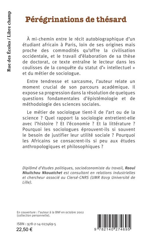À mi-chemin entre le récit autobiographique d’un étudiant africain à Paris, loin de ses origines mais proche des commodités qu’offre la civilisation occidentale, et le travail d’élaboration de sa thèse de doctorat, ce texte entraîne le lecteur dans les coulisses de la conquête du statut d’« intellectuel » et du métier de sociologue. Entre tendresse et sarcasme, l’auteur relate un moment crucial de son parcours académique. Il expose sa progression dans la résolution de quelques questions fondamentales d’épistémologie et de méthodologie des sciences sociales. Le métier de sociologue tient-il de l’art ou de la science ? Quel rapport la sociologie entretient-elle avec l’histoire ? Et l’économie ? Et la littérature ? Pourquoi les sociologues éprouvent-ils si souvent le besoin de justifier leur utilité sociale ? Pourquoi les Africains se consacrent-ils si peu aux études anthropologiques et philosophiques ?