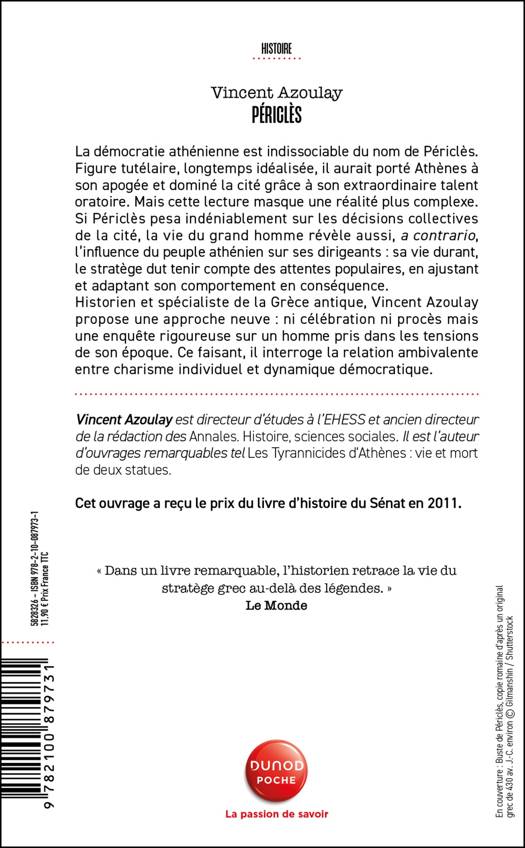 Dans la culture occidentale, Périclès a le rare privilège de donner son nom à un « Siècle », incarnant l’apogée politique et culturelle du monde grec. Pour autant, faut-il croire l’historien Thucydide lorsqu’il soutient, à propos d’Athènes : « C’était, de nom, une démocratie, mais, en fait, le premier citoyen exerçait le pouvoir » ? Périclès régna-t-il en souverain sur des masses consentantes ou ne fut-il qu’une marionnette actionnée par le peuple ? De Thucydide à Plutarque, de Voltaire à Rousseau, de Grote à Duruy, les auteurs anciens et modernes se sont interrogés sur les relations nouées entre le stratège et la communauté athénienne. Périclès, chef tout-puissant ou simple ventriloque des aspirations populaires ? Telle est l’énigme que cette enquête historique et historiographique s’emploie à résoudre. Vincent Azoulay propose ici une nouvelle édition revue et augmentée de son Périclès, ouvrage salué par la critique et récompensé par le prix du livre d’histoire du Sénat.