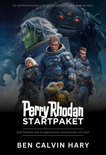 Das PERRY RHODAN-Startpaket enthält die folgenden Romane: - PERRY RHODAN-Band 3300, »Terra muss fallen«, von Ben Calvin Hary - PERRY RHODAN-Atlantis, Band 1 »Im Land der Sternengötter«, von Ben Calvin Hary - PERRY RHODAN-Storys »Der 200-Tage-Mann«, von Ben Calvin Hary