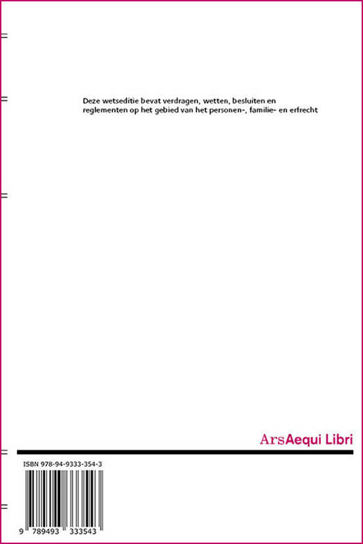 Deze wetseditie bevat verdragen, wetten, besluiten en reglementen op het gebied van het personen-, familie- en erfrecht