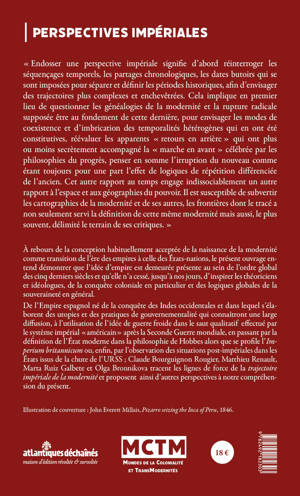 À rebours de la conception habituellement acceptée de la naissance de la modernité comme transition de l’ère des empires à celle des États-nations, l’ouvrage entend démontrer que l’idée d’empire est demeurée présente au sein de l’ordre global des cinq derniers siècles et qu’elle n’a cessé, jusqu’à nos jours, d’inspirer les théoriciens et idéologues, de la conquête coloniale en particulier et des logiques globales de la souveraineté en général. De l’Empire espagnol né de la conquête des Indes occidentales et dans lequel s’élaborent des utopies et des pratiques de gouvernementalité qui connaîtront une large diffusion, à l’utilisation de l’idée de guerre froide dans le saut qualitatif effectué par le système impérial «américain» après la Seconde Guerre mondiale, en passant par la définition de l’État moderne dans la philosophie de Hobbes alors que se profile l’Imperium britannicum ou, enfin, par l’observation des situations post-impériales dans les États issus de la chute de l’URSS ; Claude Bourguignon Rougier, Matthieu Renault, Marta Ruiz Galbete et Olga Bronnikova tracent les lignes de force de la trajectoire impériale de la modernité et proposent ainsi d’autres perspectives à notre compréhension du présent. « Endosser une perspective impériale signifie d’abord réinterroger les séquençages temporels, les partages chronologiques, les dates butoirs qui se sont imposées pour séparer et définir les périodes historiques, afin d’envisager des trajectoires plus complexes et enchevêtrées. Cela implique en premier lieu de questionner les généalogies de la modernité et la rupture radicale supposée être au fondement de cette dernière, pour envisager les modes de coexistence et d’imbrication des temporalités hétérogènes qui en ont été constitutives, réévaluer les apparents « retours en arrière » qui ont plus ou moins secrètement accompagné la « marche en avant » célébrée par les philosophies du progrès, penser en somme l’irruption du nouveau comme étant toujours pour une part l’effet de logiques de répétition différenciée de l’ancien. Cet autre rapport au temps engage indissociablement un autre rapport à l’espace et aux géographies du pouvoir. Il est susceptible de subvertir les cartographies de la modernité et de ses autres, les frontières dont le tracé a non seulement servi la définition de cette même modernité mais aussi, le plus souvent, délimité le terrain de ses critiques. »