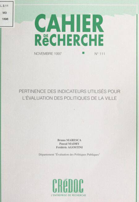 Pertinence des indicateurs utilisés pour l'évaluation des politiques de la ville EBOOK