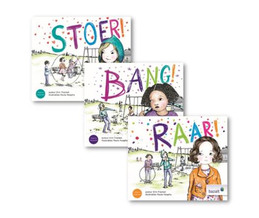 De set Pesten in Perspectief bestaat uit de uitgaven Raar!, Bang! en Stoer!. Een trilogie met realistische verhalen over pesten, verteld vanuit drie perspectieven: het slachtoffer, de toeschouwer/meeloper en het kind dat pest. Wil je met dit thema aan de slag, dan heb je alle drie de boeken nodig. Op die manier kun je het thema pesten vanuit de verschillende perspectieven onder de aandacht brengen.