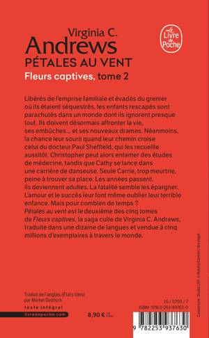 Pétales au vent est le deuxième des cinq tomes de Fleurs captives, la saga culte de Virginia C. Andrews, traduite dans une dizaine de langues et vendue à cinq millions d’exemplaires à travers le monde.
