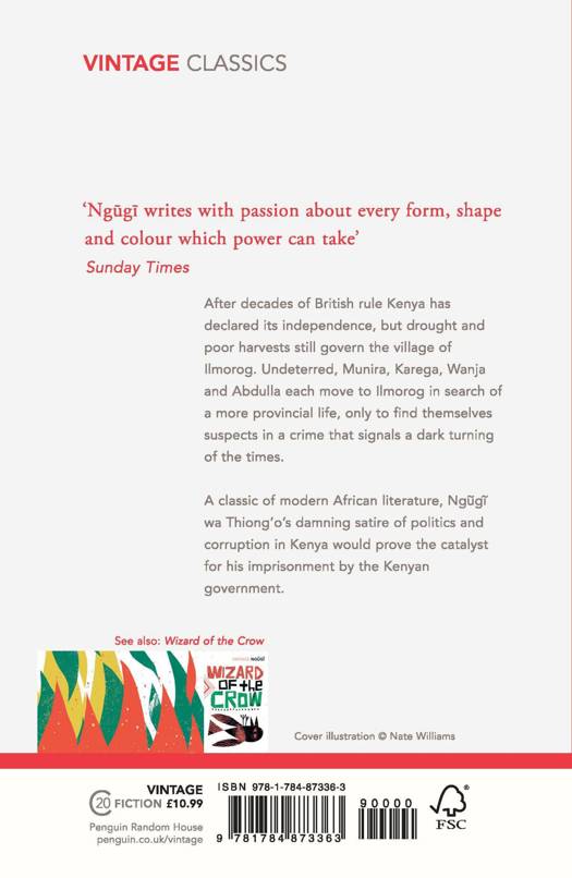 After decades of British rule Kenya has declared its independence, but drought and poor harvests still govern the village of Ilmorog. Undeterred, Munira, Karega, Wanja and Abdulla each move to Ilmorog in search of a more provincial life, only to find themselves suspects in a crime that signals a dark turning of the times.
