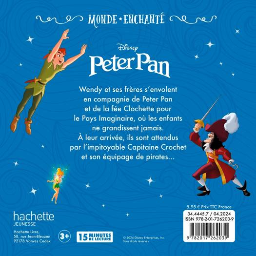 Les meilleurs moments du film Peter Pan, dans une histoire illustrée à lire en 15 minutes, pour un instant de lecture à partager entre parents et enfants.
