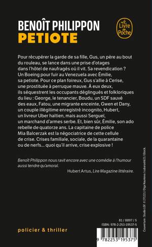 Pour récupérer la garde de sa fille, Gus, un père au bout du rouleau, se lance dans une prise d’otages dans l’hôtel de naufragés où il vit. Sa revendication ? Un Boeing pour fuir au Venezuela avec Émilie, sa petiote. Pour ce plan foireux, Gus s’allie à Cerise, une prostituée à perruque mauve. À eux deux, ils séquestrent les occupants déglingués et folkloriques du lieu : George, le tenancier, Boudu, un SDF sauvé des eaux, Fatou, une migrante enceinte, Gwen et Dany, un couple illégitime enregistré incognito, Hubert, un livreur Uber jamaïcain, mais aussi Sergueï, un marchand d’armes serbe. Et bien sûr, Émilie, son ado rebelle de quatorze ans. La capitaine de police Mia Balcerzak est la négociatrice de cette cellule de crise. Crises familiale, sociale, de la quarantaine ou de nerfs... quoi qu’il arrive, crise explosive !