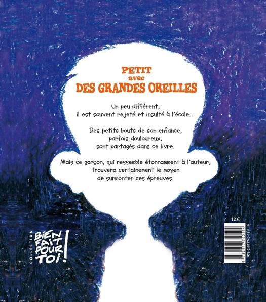 Un peu différent, il est souvent rejeté et insulté à l’école. Des petits bouts de son enfance parfois douloureux sont partagés dans ce livre. Mais ce garçon, qui ressemble étonnamment à l’auteur, trouvera certainement le moyen de surmonter ces épreuves. Un livre qui aborde le thème du harcèlement. Conseillé à partir de 8 ans.