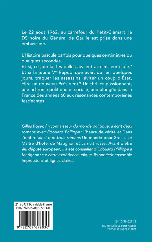 L’Histoire bascule parfois pour quelques centimètres ou quelques secondes. Et si, ce jour-là, les balles avaient atteint leur cible ? Et si la jeune Ve République avait dû, en quelques jours, traquer les assassins, éviter un coup d’État, élire un nouveau Président ? Un thriller passionnant, une uchronie politique et sociale, une plongée dans la France des années 60 aux résonances contemporaines fascinantes.