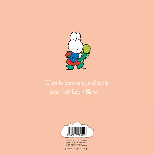Première rentrée des classes pour Petit Lapin Blanc, la journée sera bien remplie et pleine de découvertes. Entre les chants, les danses et les copains, il n’a pas le temps de s’ennuyer. Et il n’a qu’une envie, c’est d’y retourner !