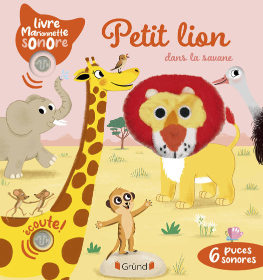 Parcours la savane avec Léon ! Fais bouger l'adorable marionnette du lion, écoute son rugissement et découvre en musique les bruits de la savane grâce à 6 puces sonores.