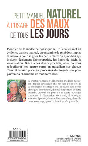 Pionnier de la médecine holistique le Dr Schaller met en évidence dans ce manuel, un ensemble de remèdes simples et naturels pour soigner les petits maux du quotidien qui incluent également l’homéopathie, les fleurs de Bach, la visualisation. Grâce à ces divers procédés, nous pouvons rééquilibrer nos quatre corps en travaillant sur chacun d’eux et laisser place au processus d’auto-guérison pour parvenir à l’harmonie de tout notre être.