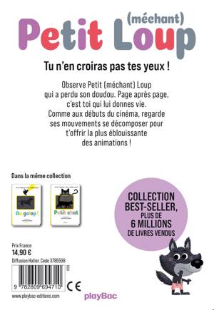 Observe Petit (méchant) Loup qui a perdu son doudou. Page après page, c’est toi qui lui donnes vie. Comme aux débuts du cinéma, regarde ses mouvements se décomposer pour t’offrir la plus éblouissante des animations !