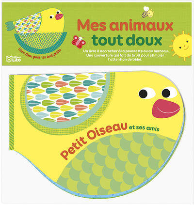 Un livre en tissu pour découvrir l'oiseau, le papillon, le soleil, l'abeille, l'escargot et la chenille.