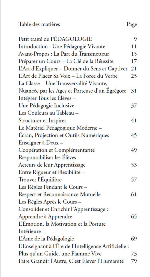 Présentation de l’ouvrageIl est des livres qui instruisent, d’autres qui questionnent. Ce Petit Traité dePédagologie appartient à une troisième catégorie, plus rare et plus essentielle: celle des ouvrages qui invitent à penser l’enseignement comme un artvivant, un acte de transmission autant qu’une quête intérieure.Dans ces pages, la pédagogie devient pédagologie, non plus simple technique,mais réflexion sur l’acte même d’enseigner. Transmettre, ici, n’est pasremplir un vase, mais allumer un feu. C’est poser des questions plus que livrerdes réponses, éveiller plutôt qu’instruire, et surtout, reconnaître que lesavoir véritable ne se limite pas aux faits, mais s’étend aux émotions, auxintuitions et à l’humanité partagée.À travers dix chapitres, ce traité explore tout ce qui donne à l’enseignementsa profondeur et son mystère : la voix, ce premier outil du maître ; laclasse, espace à la fois physique et symbolique ; la couleur, vecteur de senset de vibration ; l’intelligence collective, ce lien invisible entre les esprits ; etjusqu’à la relation avec la technologie, ce nouvel allié que l’on doit apprivoisersans s’y perdre.Mais au-delà des outils et des méthodes, cet ouvrage pose une questionessentielle : qu’est-ce qu’enseigner ? Est-ce une simple transmission ou unemétamorphose mutuelle entre celui qui donne et celui qui reçoit ? Et dansun monde saturé d’informations, quelle place reste-t-il pour la lumière plussubtile de l’intelligence humaine ?Ce Petit Traité de Pédagologie n’offre pas de réponses définitives. Il ouvredes pistes, des réflexions, des chemins à parcourir. Il ne prétend pas cloreun débat, mais l’ouvrir. Car enseigner, c’est aussi apprendre. Et tout enseignantqui prend ce livre en main s’engage, peut-être sans le savoir, dans uneaventure qui dépasse les cadres de la classe pour toucher à ce qui nous relietous : l’envie de comprendre, de transmettre et de grandir.