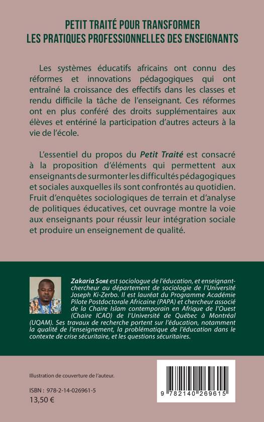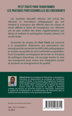 Les systèmes éducatifs africains ont connu des réformes et innovations pédagogiques qui ont entraîné la croissance des effectifs dans les classes et rendu difficile la tâche de l'enseignant. Ces réformes ont en plus conféré des droits supplémentaires aux élèves et consacré la participation d'autres acteurs à la vie de l'école. L'essentiel du propos du Petit Traité est consacré à la proposition d'éléments qui permettent aux enseignants de surmonter les difficultés pédagogiques et sociales auxquelles ils sont confrontés au quotidien. Fruit d'enquêtes sociologiques de terrain et d'analyse de politiques éducatives, cet ouvrage montre la voie aux enseignants pour réussir leur intégration sociale et produire un enseignement de qualité.
