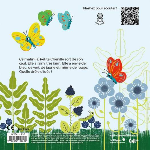 Un matin, Petite chenille sort de son oeuf. Elle a faim, très faim. Elle a envie de bleu, de vert, de jaune et même de rouge, quelle drôle d'idée !