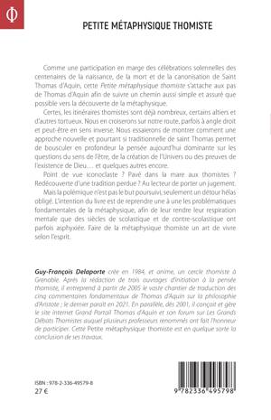 Comme une participation en marge des célébrations solennelles des centenaires de la naissance, de la mort et de la canonisation de Saint Thomas d’Aquin, cette Petite métaphysique thomiste s’attache aux pas de Thomas d’Aquin afin de suivre un chemin aussi simple et assuré que possible vers la découverte de la métaphysique. Certes, les itinéraires thomistes sont déjà nombreux, certains altiers et d’autres tortueux. Nous en croiserons sur notre route, parfois à angle droit et peut-être en sens inverse. Nous essaierons de montrer comment une approche nouvelle et pourtant si traditionnelle de saint Thomas permet de bousculer en profondeur la pensée aujourd’hui dominante sur les questions du sens de l’être, de la création de l’Univers ou des preuves de l’existence de Dieu… et quelques autres encore. Point de vue iconoclaste ? Pavé dans la mare aux thomistes ? Redécouverte d’une tradition perdue ? Au lecteur de porter un jugement. Mais la polémique n’est pas le but poursuivi, seulement un détour hélas obligé. L’intention du livre est de reprendre une à une les problématiques fondamentales de la métaphysique, afin de leur rendre leur respiration mentale que des siècles de scolastique et de contre-scolastique ont parfois asphyxiée. Faire de la métaphysique thomiste un art de vivre selon l’esprit.